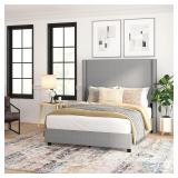 - STRONG AND NOISE-FREE CONSTRUCTION: The bed frame with headboard is constructed with a sturdy metal frame and wood slats for a 1,000-pound weight capacity. Velcro-connected slats and quiet feet ensure a restful night's sleep.