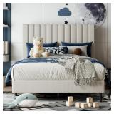 AILUNWALL Queen Size Bed Frame with Upholstered Headboard, Velvet Platform Bed Frame, Sturdy Wood Slat Support, No Springs Required, Noiseless, Easy to Assemble, Beige