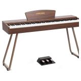 (51) 88-Key Weighted Keyboard Digital Piano in Walnut Wood Color - Electric Piano Perfect for Beginners, Includes Sheet Music Stand, Triple Pedal, Power Adapter, and USB-MIDI Support