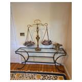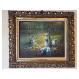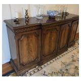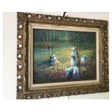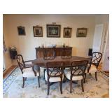 HIGHLIGHTS Quality artwork by artist such as Joseph Mellor, Donald Purdy, David Sharir, Guillermo Silva, Bernard Ganter, Charles Bragg, Risaburo Kimura, Mara Lynn Aboud, Garrick Palmer, EW Stubbs, Mildred Jones and many more including several nice framed prints, serigraphs and lithographs. Asian antiques including a pair of porcelain garden seats, antique bird cage, figurines, lantern and Imari porcelains. Persian paintings. Exceptional Old Colony double pedestal dining room set. Banded inlayed edge, brass paw feet, set of six dining chairs including two arms and six sides. Two leaves and pads. Great condition. Great Brass table with glass top. Large antique brass scale. Many other brass accessories. Vintage patio furniture. Table, chairs, chaise. Catering and Entertaining including serving items, stemware and utensils. Large porcelain dinner service for approx. 48 by Heinrich with beautiful floral detailing. Books of all kinds. CD’s including Classical and Jazz. Clothing including Eileen Fisher and other great labels. Small to medium sizes. Purses including DKNY, Eric Javits, Sondra Roberts, Alviro martini, Cole Haan, Helen Kaminski, Valentino Garavani. Large Chinese Oriental carpet, ivory field with blue and gold detail. As is condition. Furniture including king size four poster bed, antique walnut library table, mahogany sideboard cabinet. Assorted chairs, bureaus and nighstands. Basement includes Kirby vacuum, Hoover vacuum, luggage, holiday décor, floral décor, shelving and much more.
