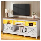 - TV Stand with Storage: 66"W x 15.7"D x 31"H TV console table supports 50" to 75" TVs, with height-adjustable shelves, side cabinets, and two display layers with sliding barn door for ample storage.