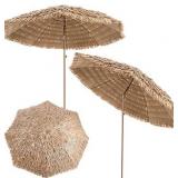 2 Pack 9 ft Hula Thatched Tiki Umbrella Hawaiian Style Beach Patio Umbrella with 8 Ribs Tilt Adjustment Manual Crank Lift for Outdoor Tiki Bar, Tropical Palapa, Backyard Pool, Patio Garden