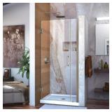 ***INCOMPLETE*** DreamLine Unidoor 32-33 in. W x 72 in. H Frameless Hinged Shower Door in Brushed Nickel ***PANEL ONLY***