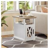 YITAHOME End Table with Charging Station, Narrow Side Table with Storage Adjustable Shelf, Farmhouse Nightstand with Door for Living Room, Bedroom, Grey Wash