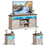 YITAHOME 3 Piece Table Set for Living Room with TV Stand & End Tables Set of 2, Farmhouse TV Stand/End Table, Entertainment Center for 65 Inch TV w/Power Outlet and LED Light for Living Room, Bedroom - 3 Boxes