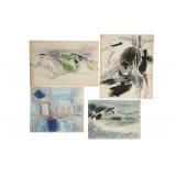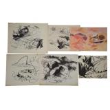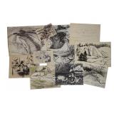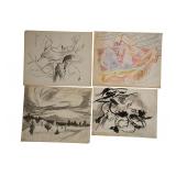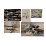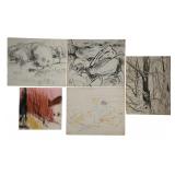 ROBERT ANGELOCH - WOODSTOCK NY - LIFETIME ART. SUNDAY JUNE 22, 12 Noon. Donny Malone Auctions proudly presents the Lifetime Collection of Original Art by Robert Angeloch - Oil Paintings, Watercolors, Woodcuts, Lithographs, Drawings, Sketches - All items acquired from the Artist's Estate in Woodstock, NY. Once in a lifetime oppurtunity to purchase original art by a prominent Woodstock NY "Colony of the Arts"artist: ROBERT ANGELOCH [1922-2011]. Biography: Robert Henry Angeloch (1922 - 2011) was active/lived in New York. Robert Angeloch is known for Etcher and block print, painter. Wikipedia: Robert Angeloch was born in Richmond Hill, New York, April 8, 1922, to Frederick and Laura Scherer Angeloch. He served in World War II in the United States Army Air Corps|. From 1946 to 1951 he studied at the Art Students League of New York with Martin Lewis, Yasuo Kuniyoshi and others. He also studied at the Academy of Fine Arts, Florence, Italy and privately with Fiske Boyd in New Hampshire. While a League student he won the McDowell Traveling Scholarship and visited France, Italy, Austria and England.His prints and drawings have been included in exhibitions at the Metropolitan Museum of Modern Art, the Library of Congress, the Society of American Graphic Artists, the Museum of Modern art, the Wichita Print Annual, the Society of Washington Printmakers and elsewhere.He was artist in residence at Western Kentucky University in 1974 under a grant from the National Endowment for the Arts. He taught at the Art Students League of New York from 1964 to 1979 and from 1968 to 2003 at the Woodstock School of Art of which he was a co-founder. In 2012, Woodstock School of Art, held a retrospective curated by his son, Eric, a painter in his own right.[1]He died on March 18, 2011 THE AUCTION IS A TOTAL LIQUIDATION at ABSOLUTE UNRESERVED SALE. ALL ITEMS START at a $10 OPENING BID REGARDLESS OF VALUE! You the buyer determine the final bid. Good Luck and thank you for participating. |