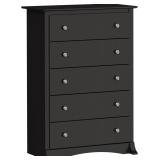 (30) Prepac Sonoma Superior 5-Drawer Chest for Bedroom - Spacious and Stylish Chest of Drawers, Measuring 17.75"D x 31.5"W x 44.75"H, In Black Finish