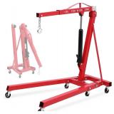 2 Ton Engine Hoist, Folding Cherry Picker Engine Hoist with Lever and 6 Casters, 4400lbs Heavy Duty Hydraulic Shop Crane, Engine Crane Lifter for Workshops Garage Warehouse