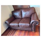 Lot #140 - Brown Leather Loveseat with Nailhead Trim