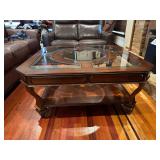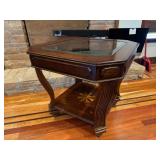Lot #203 - Vintage Side Table - Glass Top, Wooden Base