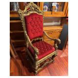 Lot #221 - Antique Ornate Throne Chair - Victorian Style.