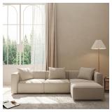 (131). Acanva Luxury Modular Sectional Living Room Sofa Set, Modern Minimalist Style Couch with Ottoman and Chaise, L-Shape, Linen-Like Cream