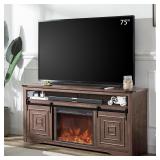 Okvnbjk TV Stand With Fireplace for 75" TV, Console With Storage and Sliding Barn Doors, Entertainment Centre for Living Room, Dark Walnut