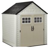 (48) Suncast 8' x 7' Heavy-Duty Resin Tremont Storage Shed with Reinforced Floor, Skylights for Natural Light, Lockable Double Doors, Cream, Made in the USA, 2 BOX