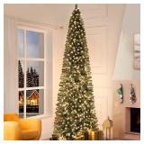 Naomi Home Vienna 9ft Oregonian Slim Artificial Christmas Tree with 1455 Branch Tips, 500 Warm Lights and Metal Stand, 37" Wide Realistic Skinny Pencil Christmas Tree with Lights