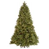 National Tree Company Pre-Lit 'Feel Real' Artificial Full Downswept Christmas Tree, Green, Douglas Fir, White Lights, Includes Stand, 7.5 feet