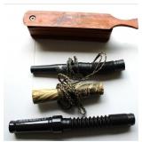 Collectibles & Curiosities: Slag Glass Lamp, Tin Winchester Signs & Thermometer, Vintage Pulleys, Deer Motif Weather Vane, 2 Man Saws, Bucking Saws, Cast Kettle on Stand, Cigarette Butt Trash Can, (2) Fly Wheels, (3) Large Wagon Wheels, Deer/Hooves Coat Rack, Cobalt Blue Bottles, Lamps & Toothpick Holder, 2 Tone Crocks, Bean Pot, "Tombstone" Movie Poster - Val Kilmer, Survival Compasses, Zippo Deer Motif Lighteer, Watch Fob, Men's Watches, Budweiser & Brass Bullet Lighters, Gerber Multi-Tool, "Sad Bassett Hound Dog" Coin Bank, Ozark Trail Survival Hatchet Tool, Hand Forged Knife w/Kydex Sheath & Micarta Handle, Browning Carving Set, Butcher's Cleaver, School Desk Bell, 1885 W. C. Meyer Sharpsville PA Dictionary, 2 Hohner Harmonicas, Rodeo Buckle, Flasks, Metal Signs: Warning Natural Gas Pipeline, 2 Sided Enameled Penna's Low Down Grain Drills, Large Speed Limit 40 Sign, Wenonah Canoe Co. MN "Catch of the Day" & Owl's Nest; Mel-O-Bit Pimento Cheese Box, Bellow, Single Trees, Presidential Spoons, Bank Bags, People's Savings Bank Tin Cash Box, RAM Decals, Crown Royal Collector Set in Bags, Vintage Hot Wheels & Matchbox Cars in Storage Boxes, Coca-Cola Galvanized Ice Bucket & More....