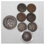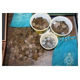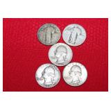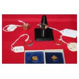 Coins, Gold, Silver & Jewelry: Gold Rings: 10K Men's Knight Stone w/Diamonds, 10K Ornate Signet Ring, 14K Band & 10K w/Gems; (2) 10K USS Honor Pins, Sterling Rings, 2 Troy Ounces .999 Pure Silver Round by Dallas Specialty Mint, (5) Silver Quarters, (12) Silver Mercury & Roosevelt Dimes, (7) Wartime Nickels, 40% Silver Kennedy Halves, Silver Foreign Coins, Indian Pennies, 1844 Large Cent, (2) 24Kt Gold Covered Double Dated Kennedy Halves, $1 & $2 Uncut Sheets, Red Seal $2 & $5 Bills, Uncirculated $2 Bills, 1st Year Susan B. Anthony Dollars, Official Asset Grading Uncirculated Presidential Dollars, 1989 Proof Set, Thousands of Wheat Pennies, Steel Wheat Pennies & Costume Jewelry.