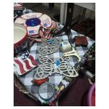 This is a very large home with numerous items for sale. Home is decorated with Asian accessories and leans towards a black color scheme. Black Piano Disc - Young Chang Akki Co. Ltd, Baby Grand Piano There are 4 bedroom sets with King, Queen and Double size bedding. One is Thomasville Black Wrought Iron Kitchen table and chairs Dining Room Wrought Iron Base Table with 8 Upholstery Chairs and 2 Serving Pieces and Hutch (will break up) Black Curio Cabinet & Black Wall Bookcases, as well as other bookcases Black Loveseat Green Upholstery Sofa, Loveseat and Matching Chair Large Black Sectional Black Daybed Many Decorative Pillows Home Office Furniture with Desk, Chair, Bookcases, Cabinets, Credenza, File Cabinet, etc. All Matching, (will break up) Numerous Tapestry Rugs (most with a black theme) & Tapestry Wall Hanging Asian or Oriental Decor, including occasional tables and cabinets, hand carved privacy screen, and numerous other pieces 3 Tall Asian Vases Rembrandt Tall Lamp Sarreid Ltd Metal / Canvas Painted Wall Piece Asian Reverse Glass Painting Couple Small Horchow Italian Florentine Gold Gild Curio Display Cabinet with Marble Top Trinket Boxes Vintage Cork Light Fixture Barovier & Toso Murano Vase Several Lladro Pieces Bose Radio with Remote 12 foot Christmas Tree Decorations for every holiday. (one room in basement is dedicated to decorations) 3 Sets of Christmas Dishes, 1 Set of Fall Dishes, 1 Set of Everyday China Beverage Fridge and Wood Beverage Rack 2 Metal Beverage Carts Artificial Flowers - including many vases with flowers Outside Sonoma Kitchen Numerous Tables and Chairs for Outside patio - Including 2 Wrought Iron Chaise Lounges, Several Other Wrought Iron Pieces, Concrete Table with 2 Benches, Deck Boxes, Heavy Decorative Aluminum Table & Chairs, Concrete Planters, etc. Beach Towels - Guest Towels Many Different Perfume Fragrances Giants and Yankee jackets, collectibles Department 56 Village houses, over 100 of them Fur Capes Men's Clothes, Shoes, Suit Jackets, Shirts, Ties, T-shirts, Socks Vintage Throne Chair Pots & Pans Small Appliances Corning Ware Several Flatware Sets Several Sets of Crystal Stemware Many Serving Platters and Dishes with Holiday Themes Lenox Nativity & Other Pieces Clayworks Nativity Baccarat Angel Many Pieces of Waterford Crystal Swarovski Crystal Pieces including Piano, Sleigh and Santa Pokemon Cards and Game Pieces XBox and PS3 Game System PS Vista with 2 Games 2 Gaming Chairs Several Smart TV's as well as older TV's Auto Harp Numerous VHS Disney Movies, and many DVD movies Gas Generator Pro-Form Comfort Stride Elliptical & Life Fitness Treadmill Power Washer Air Compressor Little Giant Ladder So much, the house is just packed with goodies |