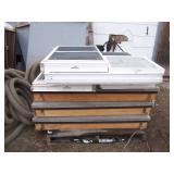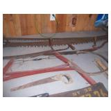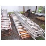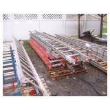 Ladders: 2 - 40' wood, 2 - 38' wood, 44' aluminum, 3 - 36' aluminum, 60' aluminum, 32' aluminum, 2 - 28' fiberglass, 3 - 24' fiberglass, 24' aluminum, 44' power ladder, 16" wide x 16' aluminum pick, 12" x 16' walk boards, 12" x 20' walk boards, 28' aluminum, 10' step ladder (fair). |