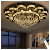 (107). Modern Chandelier Living Room Light Glam Chandeliers Ceiling Light Fixture Remote Dimmable Lights 40 Inches Luxury Crystal Black Dining Room Lights