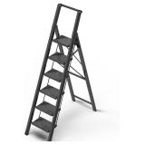 Rachet leg levelers allow user to adjust the ladder to uneven ground.