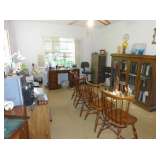 ::::::::::::::::: FURNITURE 3 Hand Made Stained Glass 2 Cedar Chests & 4 Nightstands Working Vintage Turntable in Cabinet 2 Dining Room Sets & 3 Double Bed Sets Triple Lighted Hutch & Several Side Tables Tall Metal Filing Cabinet & 2 Elegant Credenzas Sofa & Matching Loveseat & Mantle/Wall Clocks Vintage Crystal Chandelier & 2 La Z Boy Recliners Double Reclining La z Boy Recliner & Rifle Cabinet Electric Lift Chair & Solid Wooden Tea/Serving Cart Great Wooden Office Desk & Set of 4 Maple Chairs Danish Vintage Entertainment Center & Great Mirrors 2 Vintage Dressers w/Mirrors & 3 Chest of Drawers & 3