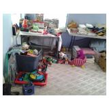 REMAINING ITEMS: King size headboard/frame and dresser/mirror, coffee table and 2 end tables (barley twist type legs), armoire, computer desk, glassware, kitchen items, home decor, vintage toys/dolls, linens, Christmas decor, books, records, cd's/dvd's, refrigerator, hand/lawn tools, electric scooters, more. PLEASE NOTE - The family is bringing in additional items for the sale including furniture, framed art, home decor. If time permits, pictures will be added to this listing Friday evening. |