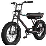 E-bike With Retro Style - electric bike equipped with throwback bench seat and graphics, ready for speedy runs to the café or leisurely cruises (local laws apply)