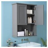 Grey Cabinet Wall Mounted with 2 Doors, Wooden Medicine Cabinet with Adjustable Shelf, 23"x 29" Over Toilet Wall Hanging Cabinets for Bathroom Bedroom, Kitchen, Laundry Room