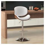 Bar Stools, Swivel Adjustable Height Barstools, PU Leather Upholstered Bar Chairs with Footrest, Bentwood Bar Stool for Kitchen, Bar, Dining Room(WHITE)-MISSING HARDWARE