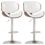Bar Stools Set of 2, Swivel Adjustable Height Barstools, PU Leather Upholstered Bar Chairs with Footrest, Bentwood Bar Stool for Kitchen, Bar, Dining Room(White PU)