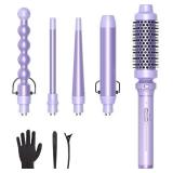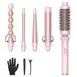 Wavytalk 5 in 1 Curling Iron,Curling Wand Set with Curling Brush and 4 Interchangeable Ceramic Curling Wand(0.5”-1.25”),Instant Heat Up,Include Heat Protective Glove & 2 Clips (Pink)