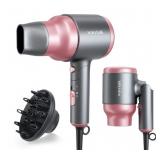 Wavytalk Portable Hair Dryer with Diffuser, Foldable Mini Hair Dryer with Lightweight Design, 1600W Small Hair Blow Dryer with Diffuser for Curly Hair Fast Drying, Rose Pink