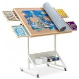 2-in-1 Tilting & Rotating Puzzle Table with 4 Colored Drawers & Cover & Flip Top Design, Jigsaw Puzzle Board with Tilt Angle & Height Adjustments, Easy to Move, for 1500 Piece Jigsaw Puzzles
