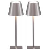 2 Pack Cordless Table Lamp,Portable LED Desk Lamp, 4000mAh Battery Operated, 3 Color Stepless Dimming Up, for Restaurant/Bedroom/Bars/Outdoor Party/Camping/Coffee Shop Night Light(Brushed Nickel)