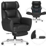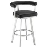 - Upholstered backrest and seat cushion in soft, lustrous black vegan faux leather with 2.5 inch thick foam padded seat cushion and resists cracking, staining, fading, and is also UV resistant with 360 degree smooth gliding swivel chair function, providing maximum mobility