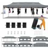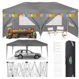 (78) COBIZI 10x30 Heavy Duty Canopy Pop up Commercial Canopy Tent with 8 Sidewalls,Outdoor Carport with Roller Bag,Pop up Tents for Parties,Wedding,Commercial,Events,Gray(Frame Thickened)
