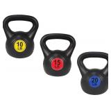 - Set of 3 Kettlebells: Wide Grip 3-Piece Kettlebell Exercise Fitness Weight Set, Include 10 lbs, 15 lbs and 20 lbs