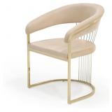 Limise Collection Modern Velvet Upholstered Dining Chair with Stainless Steel Base, Beige, Gold