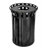 (144). Alpine Commercial Outdoor Trash Can - 38 Gallon Heavy Duty Metal Garbage Can with Lid & Liner, All Weather Resistant Large Outside Trash Can Used in Park, School. Parking, Beach (Black - Open Top)