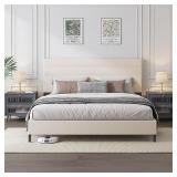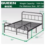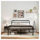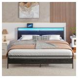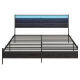 BOFENG Black King Size Bed Frame with Wood Headboard,Charging Station,LED Lights,Industrial Metal Platform Bed Frame King Size with Storage No Box Spring Needed,Heavy Duty Metal Slats,Easy Assembly