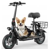 (203). Gyroor C1 Plus Electric Scooter for Adults with Seat & Pet Basket - 30 Miles Range 650W Motor 48V 13.5Ah Battery 18.6MPH 14" Pneumatic Tires Foldable Design Dual Shock Absorbers 300lbs Capacity