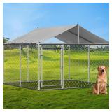 7.5×7.5FT Large Outdoor Dog Kennel with Roof Cover, Heavy Duty Chain Link Dog House Cage Playpen with Lockable Door for Backyard