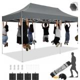 COBIZI 10x20 Pop Up Canopy Tent with Awning,Heavy Duty Canopy UPF 50+ All Season Wind Waterproof Commercial Outdoor Street Vendors Party Tents for Parties Canopy with Roller Bag(10 x 20 ft Gray)