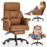 C39 Cross Legged Office Chair with Footrest & Convertible Armrests - Pet-Friendly XL Home Desk Chair, Ergonomic Recliner with Lumbar Pillow, Criss Cross Design, Big and Tall Executive Chair