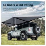 - Rugged All-Weather Protection: Crafted from 600D double ripstop polyester-cotton fusion fabric, and reinforced with waterproof tapes, our 180-degree Karlu awning shields you from the elements with an unwavering 3,000mm waterproof rating and UV50+ sun protection. Equipped with tie-down ropes and Velcro stabilizers on its horizontal arms, it enhances stability. Designed to withstand winds up to 18.64 mph.