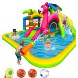 RETRO JUMP Inflatable Water Slide,Flamingo Water Park Bouncy Castle,9 in 1 Waterslides with Climbing Wall,Splash Pool,Toy Market Stand, Bounce Area,Water Cannon,Basketball Rim,Sprinkler and Blower