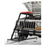 - LIGHTWEIGHT ALUMINUM. This trailer hitch cargo carrier with ramp is constructed from aluminum to be strong, highly corrosion-resistant and easy to move and operate. It also features a durable carbide black powder coat finish for added weather protection