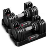 - ADJUSTABLE DUMBBELLS SET: Elevate your fitness and performance with strength-training equipment that adjusts with you. These PowerBlock dumbbells have a range of 5-50 pounds per hand, a padded handle, and easy weight identification.